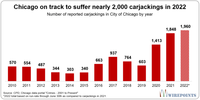 -Chicago leads the US with 2000+ carjackings last year. About 10% of the vehicles were recovered. Experts say teenagers and auto theft criminals commit most of the crimes. Notice the jump when Biden took office in 2020-2021.