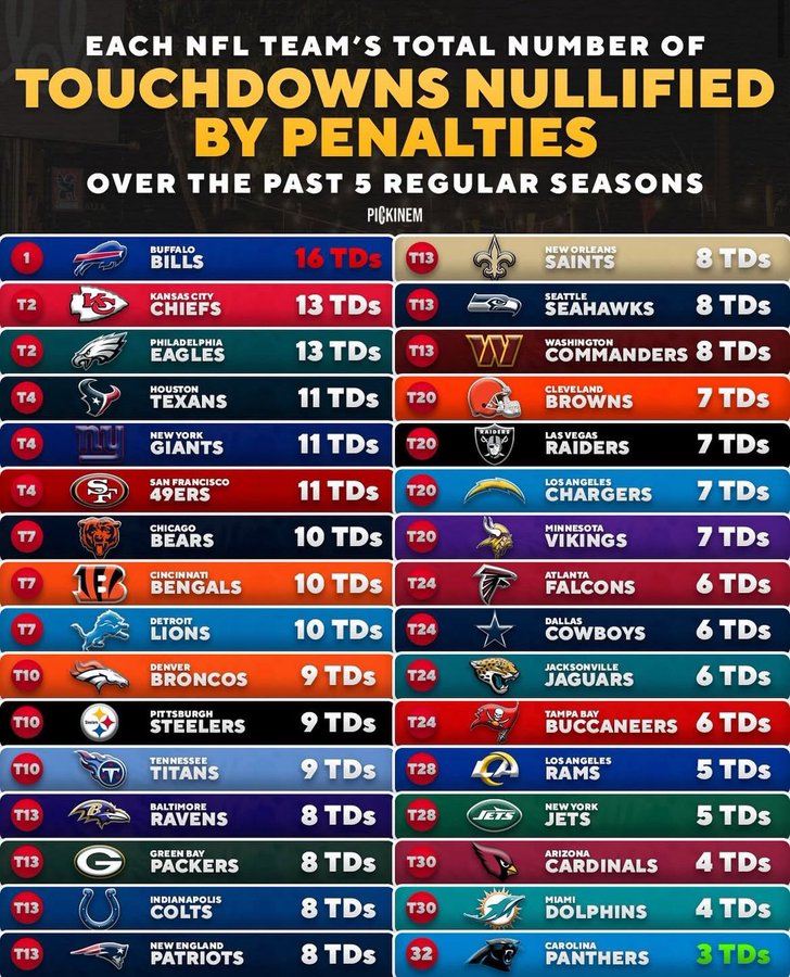 The penalties on both teams show the lack of adhering to the rules of football. It is maddening to watch teams committing penalties like lining up in the neutral zone, offsides, holding, delay of game, illegal formation, illegal shift, too many players on the field, hands to the face, pass interference, offsides, running into the kicker, unsportsmanlike conduct, taunting, and excessive celebration.