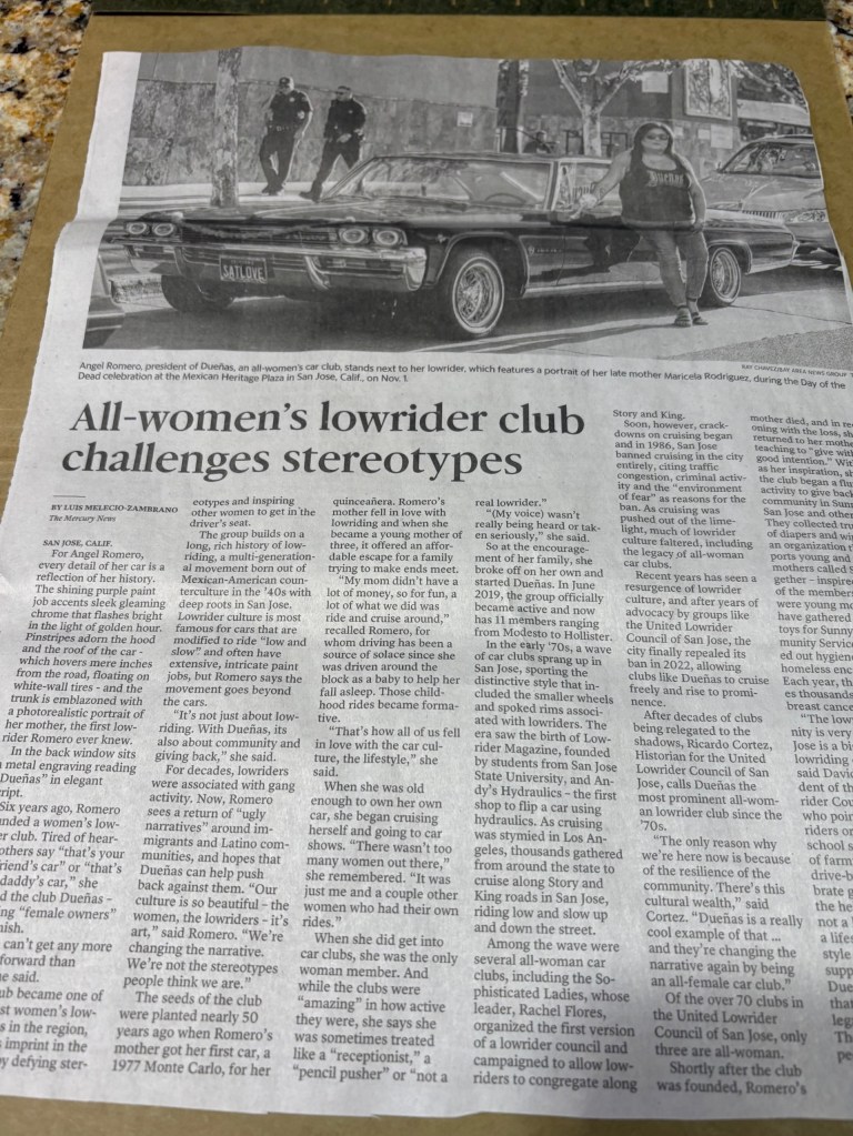 See article below. A very newsworthy article in the local paper. Women have formed a lowrider club, whatever the hell that is! Another major gain for women’s rights. I guess men are excluded. I really appreciate the local “fishwrap” keeping me informed about all the important issues. Madness!